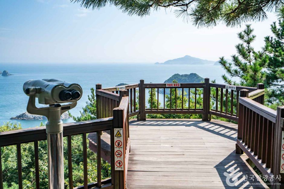 해금강 가는 길 왼쪽으로 내려가면 도장포 마을이 나오고, 그 마을 북쪽에 자리 잡은 곳이 바로 바람의 언덕이다. 원래의 지명은 ‘띠밭늘’로 불렸으나, 2002년부터 ‘바람의 언덕’으로 바뀌어 불리고 있다. 언덕에서 바다를 바라보면 한 없이 넓고, 고즈넉하며, 시원한 바람이 상쾌함을 선사한다. 여기서 보이는 것들은 하나같이 지루하지 않은 한가함을 입었다.섬도, 등대도, 유람선도, 바람마저도 한가해 보인다.